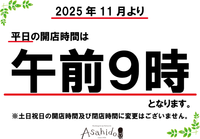 平素は格別のご愛顧を賜り、厚く御礼申し上げます。この度、誠に勝手ながら、令和7年11月4日(火)より、平日の開店時間を以下の通り変更させていただきます。ご不便、ご迷惑をおかけいたしますが、何卒ご理解ご協力をお願い申し上げます。 ・平日の開店時... -