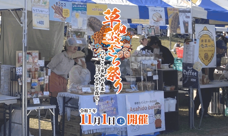 「草加ふささら祭り2025」に出展します 開催日:令和7年11月1日(土) 9:30〜16:30場所:まつばら綾瀬川公園会場 揚げたてドーナツとパン、焼き菓子を販売します。 草加ふささら祭り2025のサイトへ 連携イベントの「第33回草加商工会議所まつり」「YEGら... -